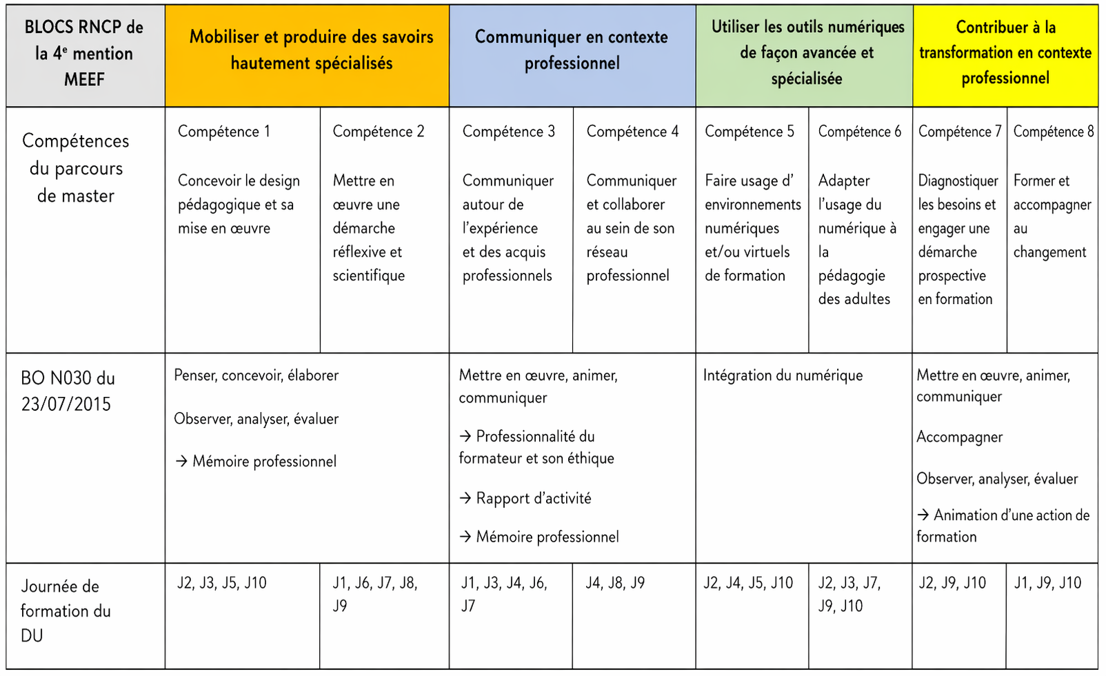 Les compétences clefs du Diplôme Universitaire sont issues de deux référentiels :